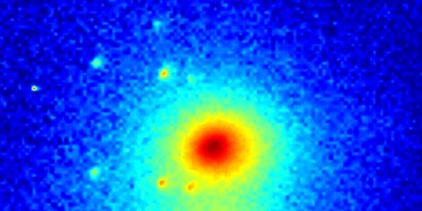Interstellarer Komet 3I/ATLAS am 25.12.2025, f = 300 mm, QHY294C, IRB-Filter, 04:30 UT, 02:54 Stunden Belichtungszeit, 70% und 100% der Originalauflösung. Der Komet zeigt weiterhin einen kurzen Schweif, und die gelbliche Farbe deutet darauf hin, dass sowohl die Coma als auch der Schweif von Staub dominiert werden. Interessanterweise scheint es so, als ob der Schweif zur Sonne zeigen würde, also nach Südosten (unten links). Dies ist wahrscheinlich ein Projektionseffekt, da sich die Erde zur Zeit zwischen der Sonne und dem Kometen befindet, so dass ein irdischer Beobachter den Schweif "von vorne" sieht, da er in Wirklichkeit von der Sonne und der Erde weg zeigt. Unter dieser Beobachtungsgeometrie würde bereits eine leichte Krümmung des Schweifs den optischen Eindruck erwecken, als zeige er zur Sonne und die Coma sei in die gleiche Richtung elongiert.