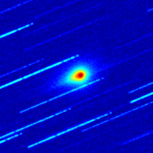 Interstellarer Komet 3I/ATLAS am 19.01.2026, f = 300 mm, QHY294C, IRB-Filter, 04:30 UT, 01:30 Stunden Belichtungszeit, 70% der Originalauflösung. Der Komet ist sehr lichtschwach geworden, zeigt aber weiterhin einen kurzen Schweif.