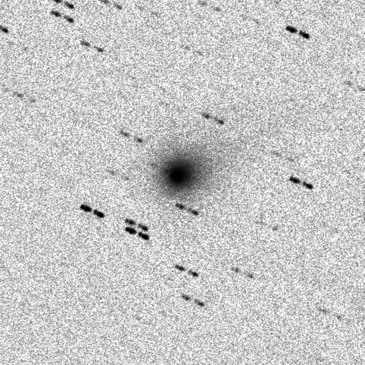 Komet C/2025 A6 (Lemmon) am 02.10.2025, f = 300 mm, QHY294C, IRB-Filter, 43:30 Minuten Belichtungszeit, 50% der Originalauflösung. Das Bild wurde um ca. 04:00 UT unmittelbar vor der Morgendämmerung bei durchziehenden dünnen Wolken aufgenommen. Die intensive grüne C2-Emission der Coma ist weiterhin dominant, ebenso wie der schmale gerade Gasschweif. Mittlerweile ist jedoch auch ein weiter aufgefächerter Staubschweif sichtbar, der nicht genau parallel zum Gasschweif verläuft.